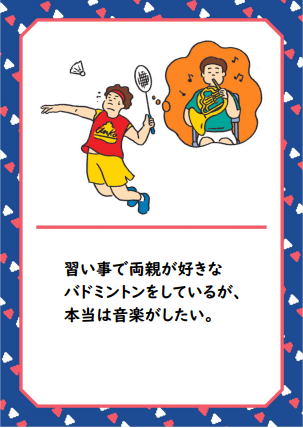困難な状況を乗り越えるために有効だと思うカードを選んでいくゲームです。
