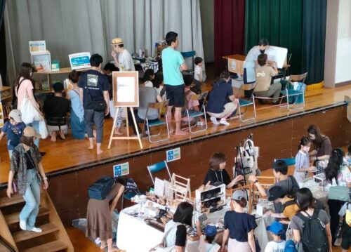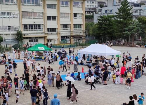 鷺沼小学校の校庭では、地元飲食店の出店や地元企業等による体験ブースが行われました。また、体育館では、マルシェや読み聞かせ、リユース本による「さぎ沼ライブラリー」が行われました。