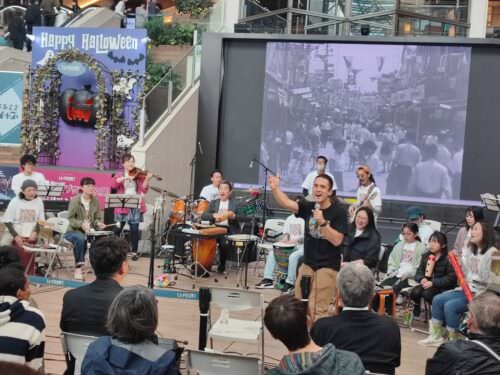 また、途中「思い出」という曲が演奏されました。この曲は、本イベントの前日に行われたワークショップの中で、参加者それぞれの川崎の思い出をもとに曲として作り上げた曲です。演奏にあたって、ベン氏は次のように述べています。