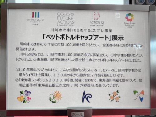 10月21日(土)に小学生が描いたイラストなどを基にしたペットボトルキャップアートが、カルッツかわさき ホールロビーで展示されました!