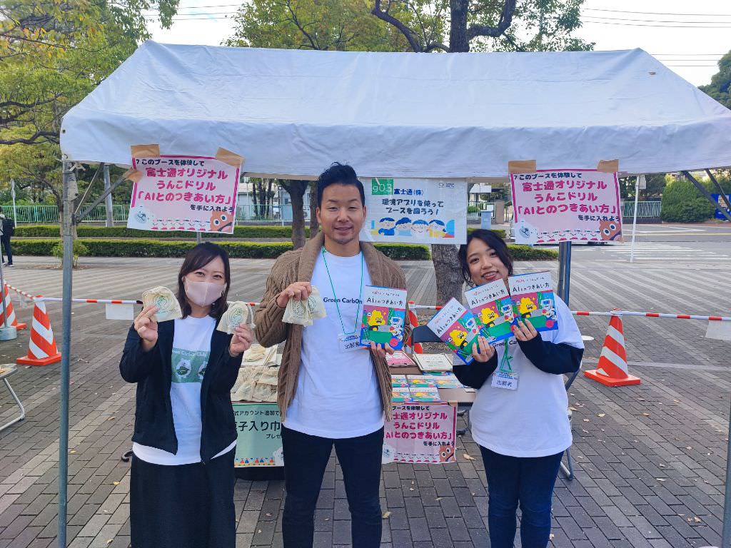 富士通株式会社のブースでは、環境アプリ「Green Carb0n Club」を活用し、身近な環境配慮商品や取り組みを知ることで環境に関心を持つきっかけをもたらす取組が行われました。