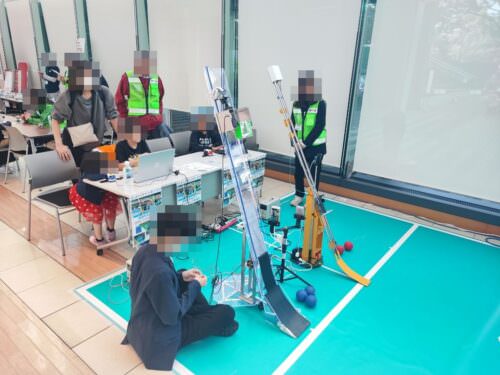 NECプロボノ倶楽部のブースでは小型のロボットを使ったプログラミング教室が行われていました。皆さん、目の前のロボットを上手に動かすために、真剣な眼差しで試行錯誤を繰り返していました。上手く動かせたかな?