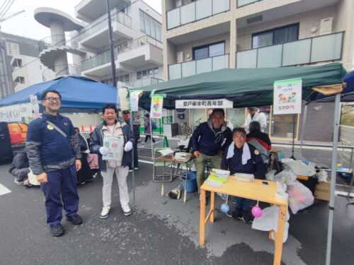 多摩消防団稲田分団登戸班のブースでは、実際に消防車に体験乗車を行ったり、消防団が用いる道具に触れて学ぶことができました。