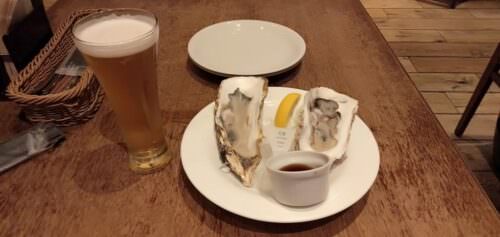 大きい生牡蠣とビールのセットに大満足です!