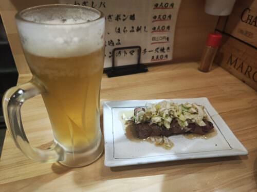 絶妙に焼かれたレバーとビールの相性が最高!