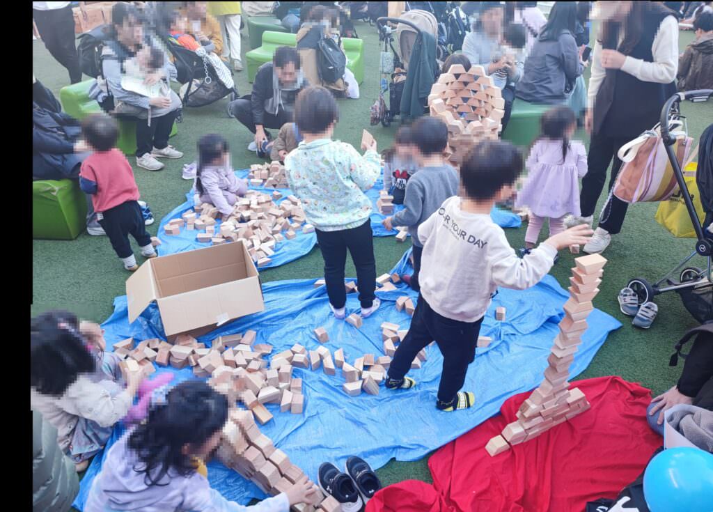 宮崎県のブースでは木材で作ったつみきの展示、販売が行われていました。宮崎県は杉の丸太生産量がなんと32年連続日本一!そんな宮崎県の杉に身近で触れ、遊ぶことができました。