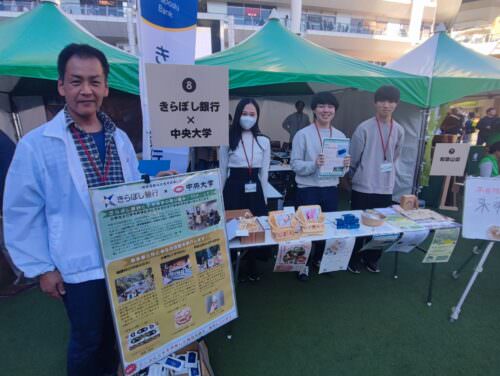 きらぼし銀行×中央大学のブースでは持続可能な社会を目指して大学生が企画・開発した木製製品の展示販売が行われました。