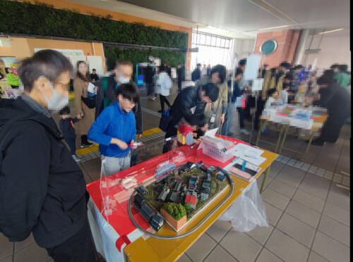 実際に自分で作った電気で、目の前の電車を動かすことができ、子どもたちが夢中になって発電機を回していました。