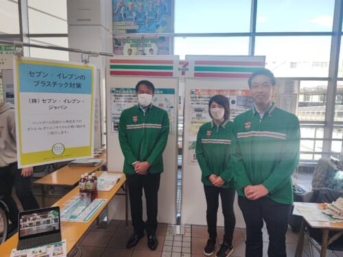 株式会社セブン‐イレブン・ジャパンのブースでは、ペットボトルの回収から再生されるまでの流れ、ボトルtoボトルリサイクルの取組について学ぶことができました。