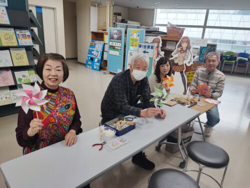 写真は風車つくりの先生の皆様です。素敵な風車と一緒にパシャリ!