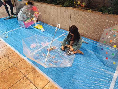 子どもたちが思い思いに好きな絵をビニール傘に描いているのが非常に印象的でした。