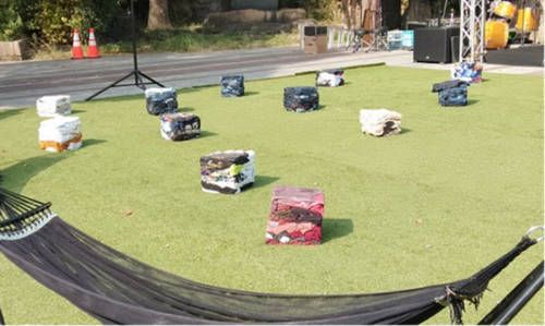 パークステージやアーバンフォレストに置いて、古着で固めた椅子をならべ、お越しいただいた方々にすわってもらいました。