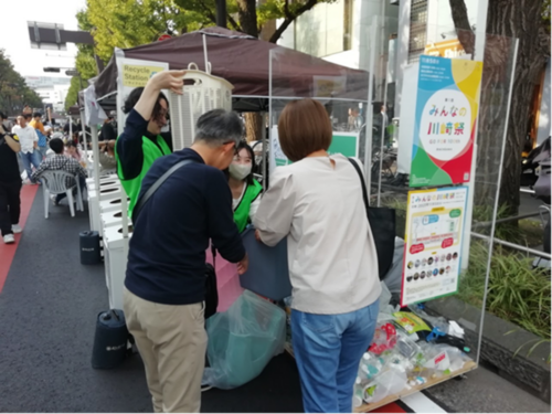 空とぶサカナは、海洋環境の保全活動を行っている団体です。みんなの川崎祭では、展示とワークショップを行い、参加者にプラスチックゴミが海に与える影響について伝えていました。