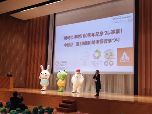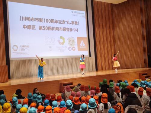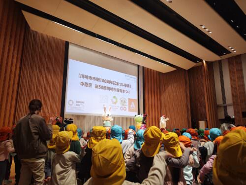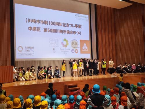 第50回川崎市保育まつり(中原区)が2024年1月16日、NEC玉川ルネッサンスシティーホールで行われました。4年ぶりの対面開催にて実施され、今年の4月から小学校に進学する区内60園約100名弱の保育園児が参加しました。