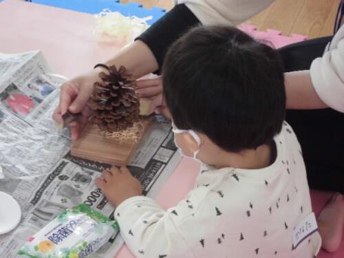 各区の地域子育て支援センターや公立保育園を会場にして、親子で楽しめる「廃材を使用したおもちゃ作り」のイベントを開催しました。牛乳パックやトイレットペーパーの芯・わらや木端などを使用し、パクパク人形やジャンプかえる等、その場で作り、その場で遊ぶことで、親子で一緒に楽しんだり参加者同士が交流したりできる時間となりました。