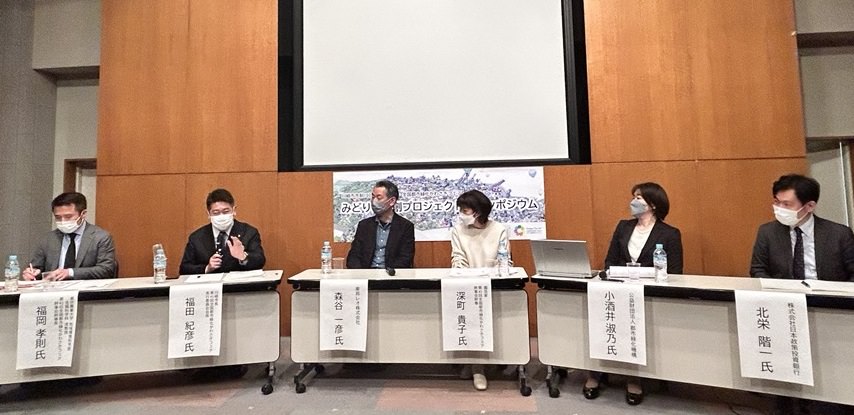 シンポジウムでは、有識者による基調講演や、「みどりの共創プロジェクト」で議論してきた事業提案の発表のほか、本市で活躍されている方々とのパネルディスカッションを行いました。