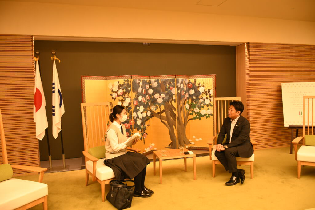 取材後、三浦さんは「市長からしか聞くことのできない言葉をたくさん聞けて、嬉しかったです。インタビューするなかで、市長の川崎に対する想いが強く感じられました。また、私達市民のことをこんなに近くに感じて近くに考えてくださっていることに感動しました。」と話していました。