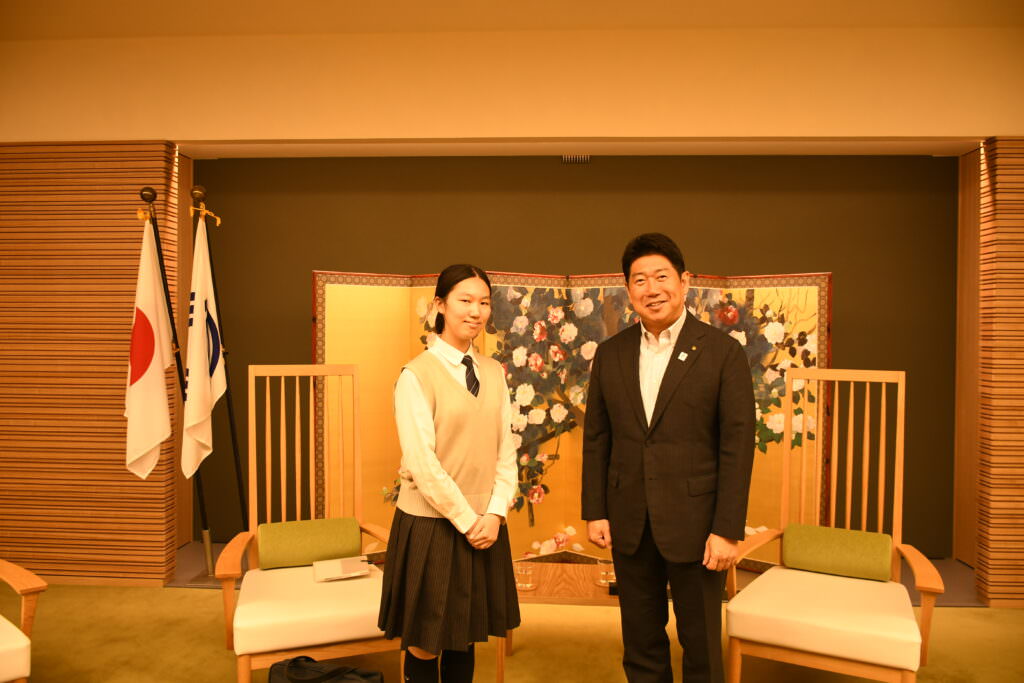 三浦さんは、学校の友人や全国に地元・川崎の良さや魅力、取組を多くの人に知ってもらいたいと思い、「川崎市市制100周年」をテーマに考え、市長への取材を希望したものです。