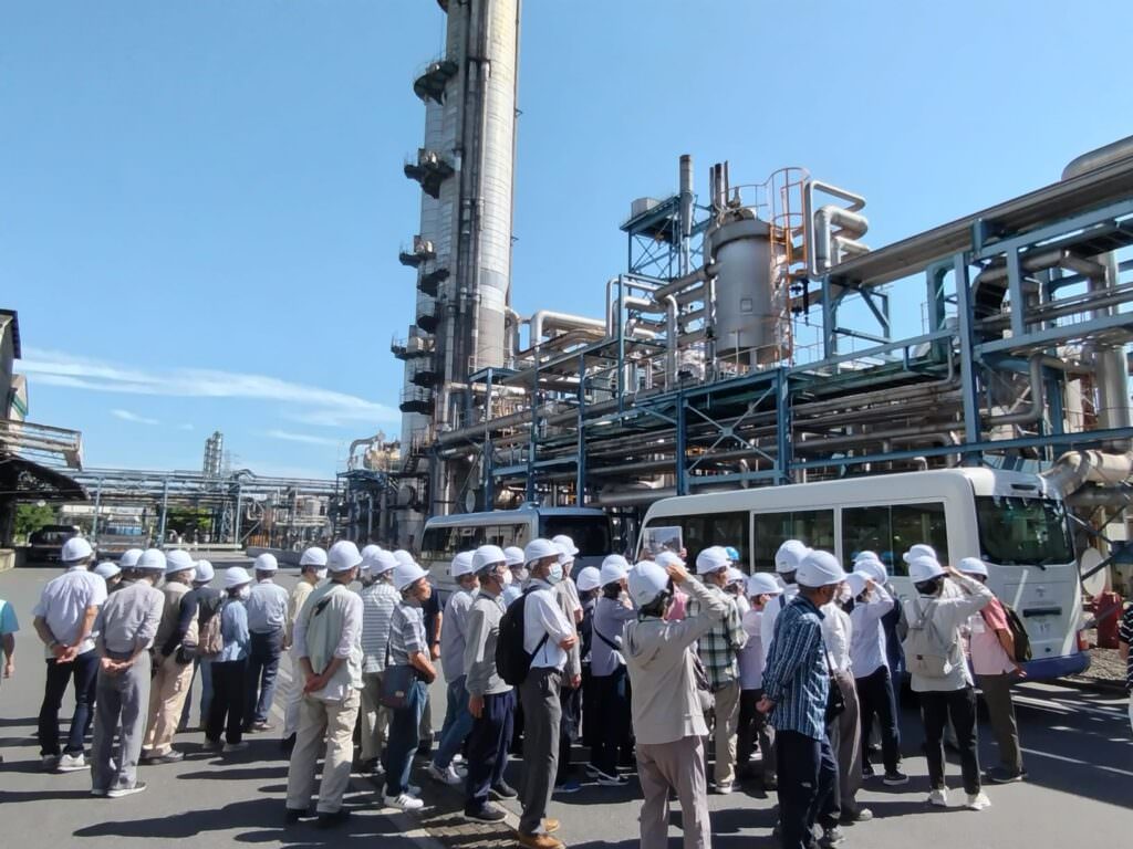 また、レゾナックの事業紹介や環境・安全への取り組みを理解してもらうために実施しているのが『工場見学』です。最近は、学習支援の場として「寺子屋」からの依頼もあり、そこで学ぶ小学生も見学にきて、化学やリサイクルについて学びを深めているそう。今年は、専門的な生涯学習を提供する「かわさき市民アカデミー」の関係者も訪れ、レゾナックの事業に高い関心を寄せました。さらに見学者を受け入れるだけでなく、中学校への出前授業を行うなど、キャリア教育という面でも力を入れているレゾナック。「将来の働き方や生き方を考えるきっかけにしてもらいつつ、当社の事業を知ってもらうことで、化学やエンジニアリングに関心をもつ子どもたちが増えるとなお嬉しいですね」と思いを込めます。