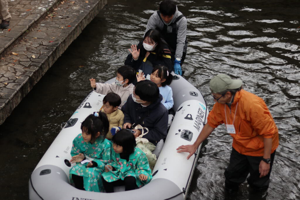 11月10日(日)に川崎市制100周年を記念して、小学生以下のお子様を含む親子を対象に二ヶ領用水宿河原線で川下り体験を実施しました。