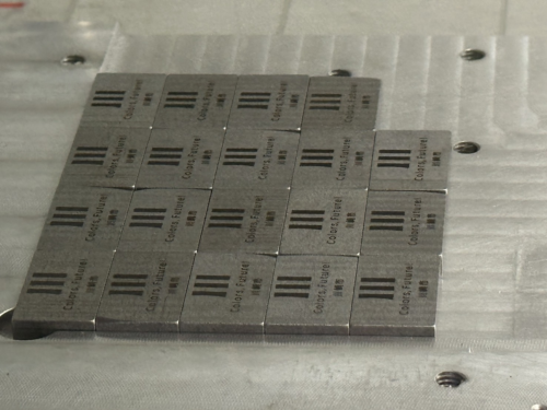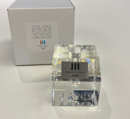 実は、川崎市市制100周年記念式典で、来場者記念品として配付されたオリジナルペンホルダーには、2023年9月16日の高炉最終稼働日に作られた鉄が使用されました。この「最後の鉄」は、工場の人々が「何かに使えるかもしれない」と自主的に残しておいてくれていたものだったそうです。鉄は2.5cm大のプレート状にカットされ、市のブランドメッセージが刻印されました。鉄を想う現場で働く人々の計らいで、市制100周年にふさわしい重みのある記念品を完成させることができたのです。「当所の鉄を使いたいというご依頼は率直に嬉しかったですし、市の鉄づくりに対する想いを感じました」と下山さんは振り返ります。