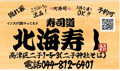 100周年特製コースター企画vol.14は「北海寿し」さんのご紹介です。コースター企画第1弾にもご参加いただいた「北海寿し」さんは、東急田園都市線・東急大井町線「二子新地駅」から徒歩3分ほどに立地しています。今回も100周年特製コースターを利用いただけることになり、大将にお話を伺いました。