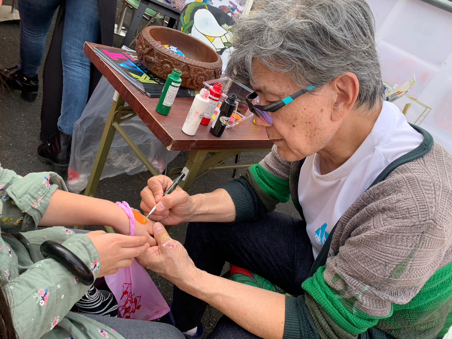 その「フェイスペイント」のブースを担当したのはKATのアーティスト、世界平和親善画家として活動するHARU川満。