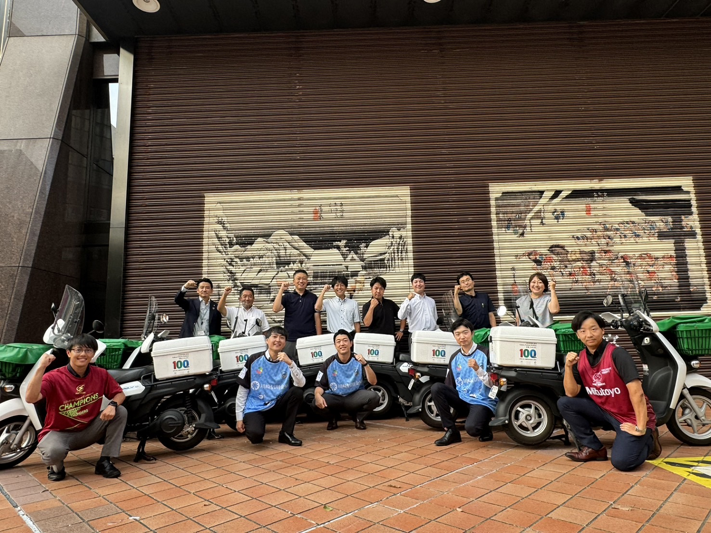 2023年7月に創立100周年を迎えた「かわしん」は、川崎市内各店舗で使用する自転車・バイクに川崎市市制100周年ステッカーを貼付し、市制100周年記念事業を応援しています!