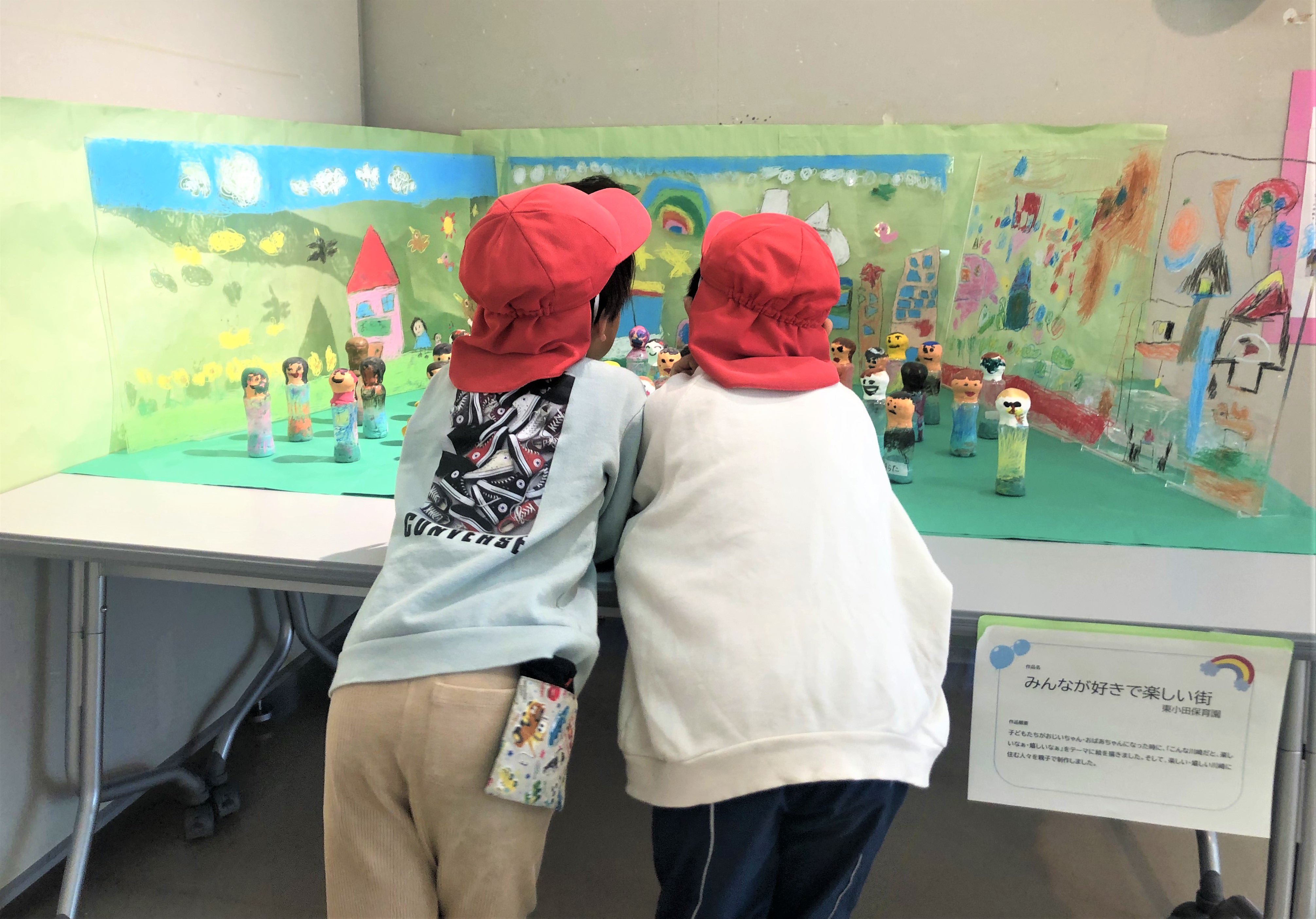 川崎市市制100周年を記念して、公立保育園の子どもたちが保育士と一緒に「100年後の未来の川崎はどんな街になっているかな?」と、想像したものを形にした作品展を2月21日(金)~2月26日(水)に高津市民ギャラリーで展示しました。