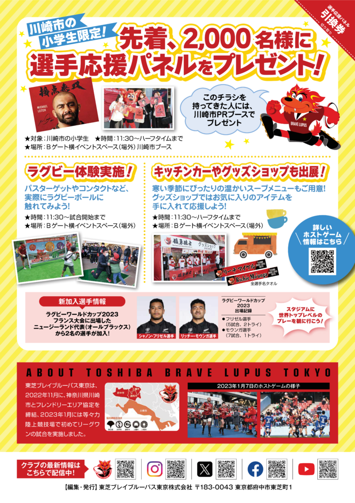当日は先着2,000名様に選手応援パネルをプレゼント!(チラシ持参の小学生が対象です。)