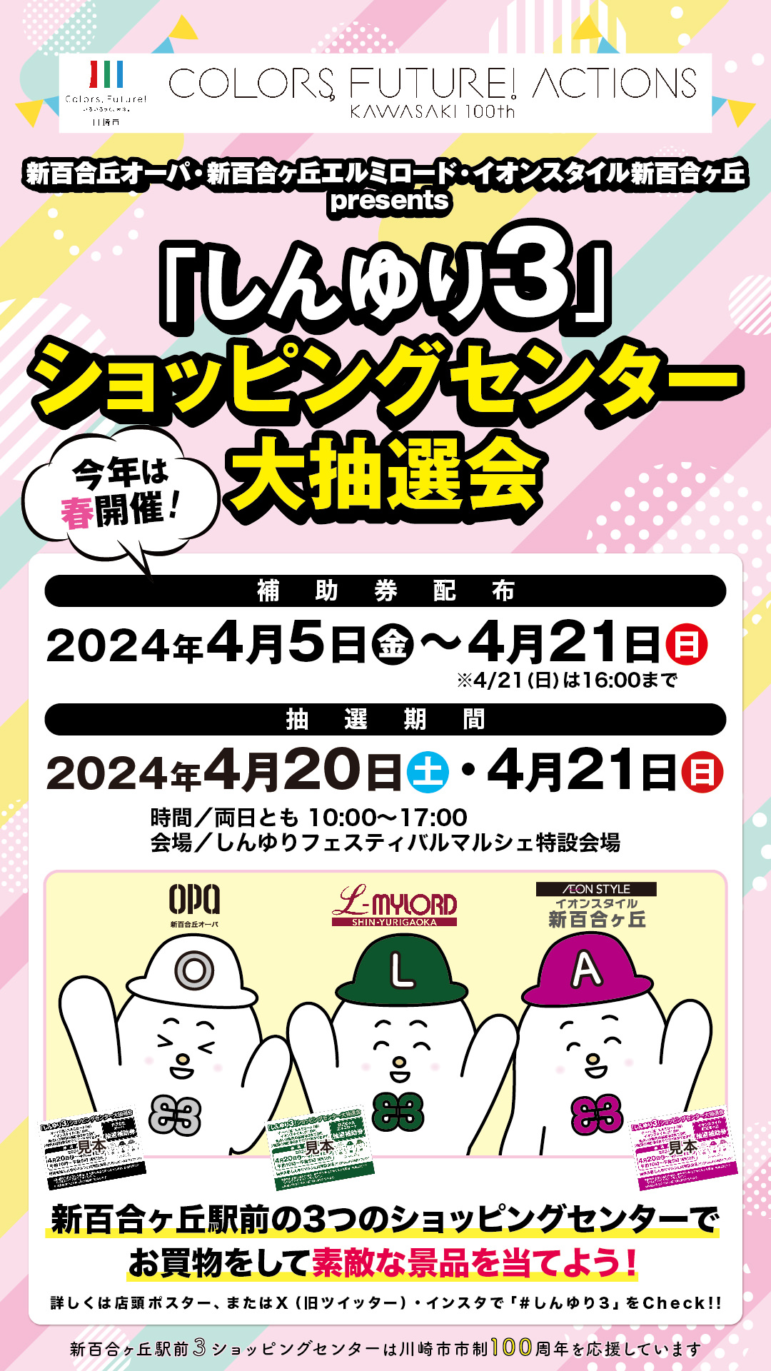 2024年に迎える川崎市市制100周年を記念し、新百合ヶ丘駅前にある3つのショッピングセンターが連携し、