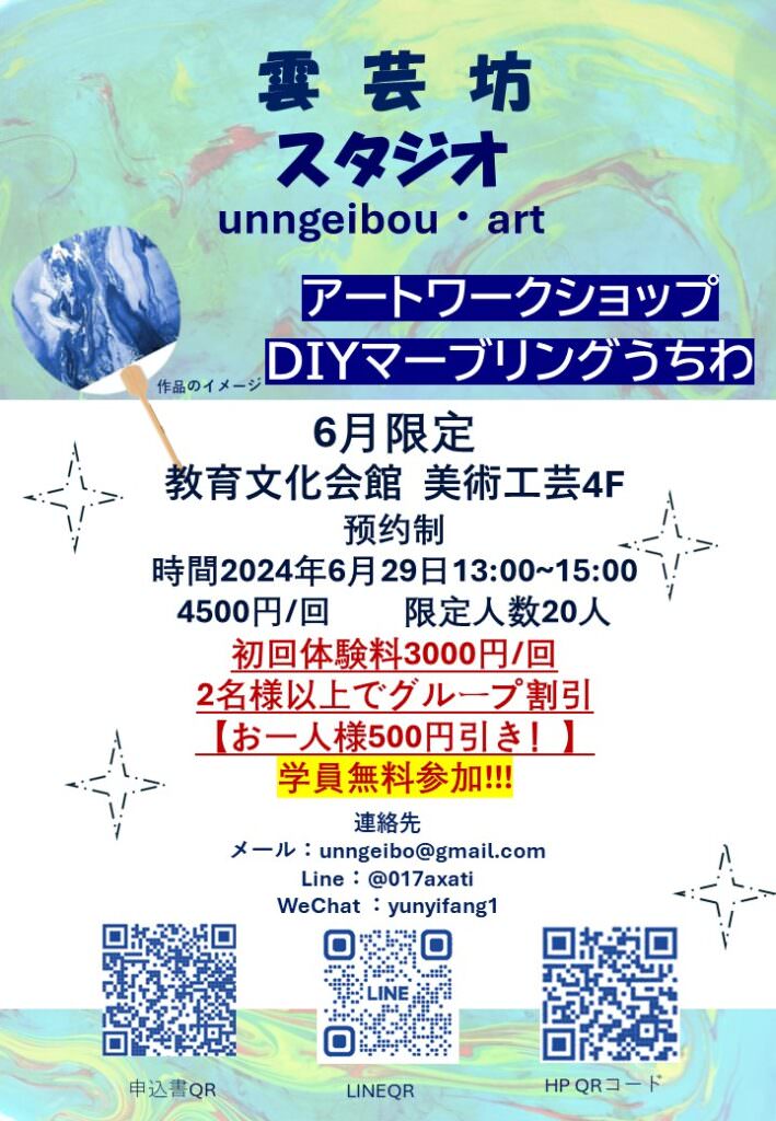 連絡先:メール → unngeibo@gmail.com、Line → @017axati、WeChat → yunyifang1
