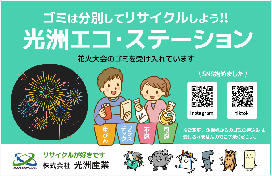 花火大会の観覧客の皆さんが持ち帰るゴミを光洲エコステーションで受け取らせていただきます。