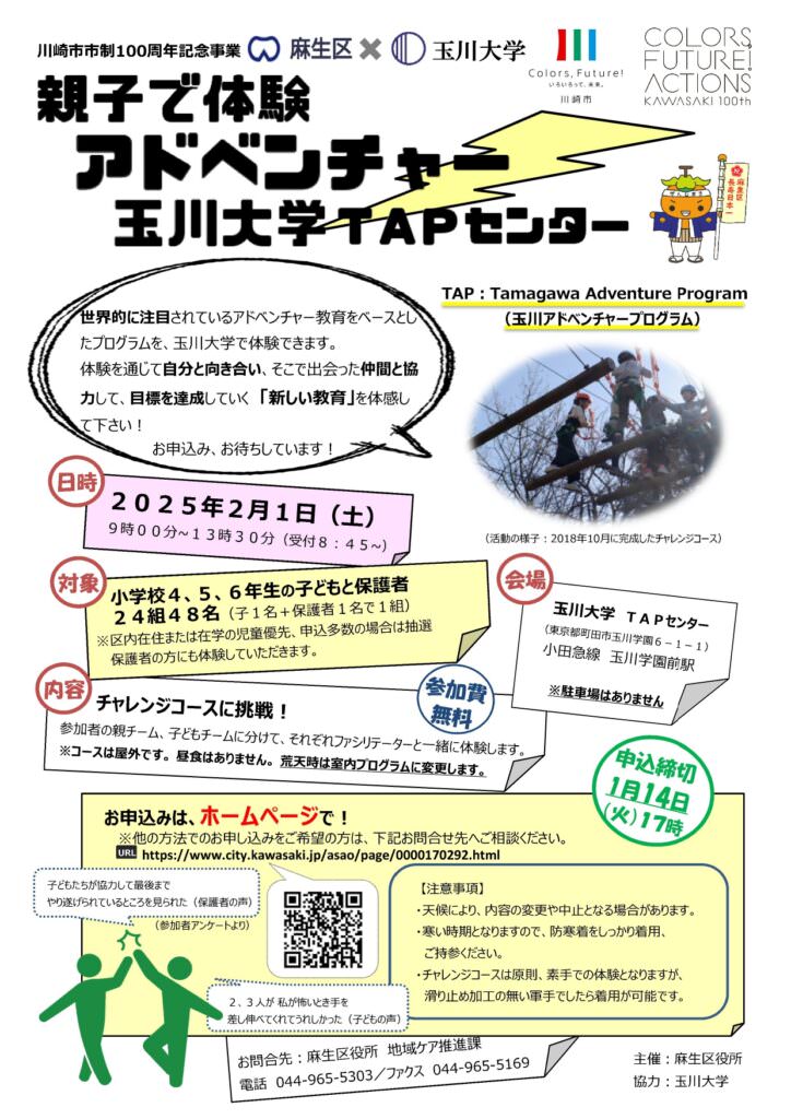 川崎市麻生区 : 親子で体験アドベンチャー・玉川大学TAPセンター【市制100周年記念事業】 (city.kawasaki.jp)