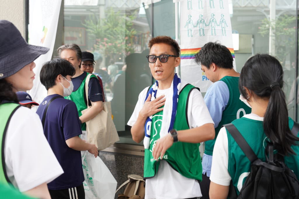チームリーダーの田村寛之さんから活動の説明があり、この日は特別にAチームとBチームに分かれ、それぞれのチームでゴミ拾いがスタートしました。