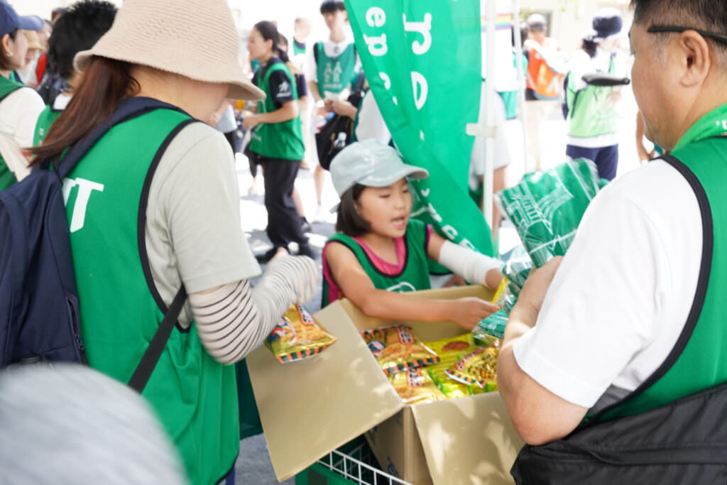 最後はスターバックス コーヒー 川崎地区からサプライズでのコーヒーチケットをはじめ、活動のサポートをしている企業から冷えたお水やお菓子などが参加者に配られました。暑い中、一生懸命ゴミ拾いをした子どもたちも喜んで受け取りました。