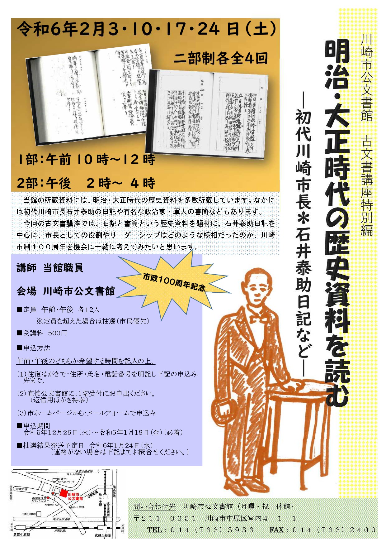 テーマ:「明治・大正時代の歴史資料を読む―初代川崎市長・石井泰助日記など」