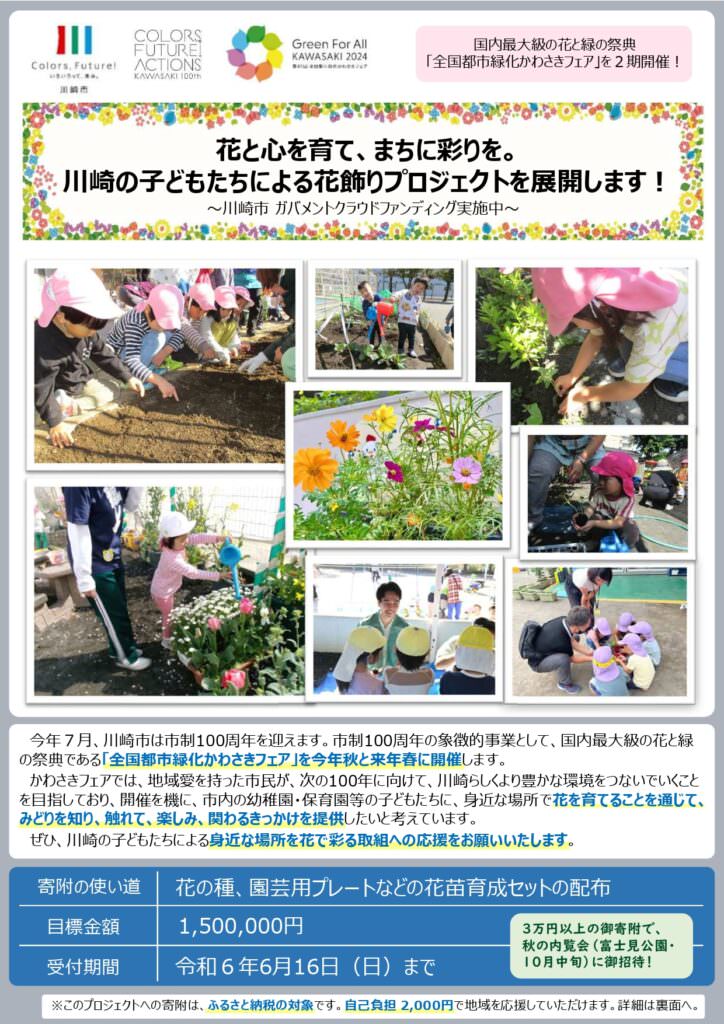 URL︓花と心を育て、まちに彩りを!川崎の子どもたちに花苗育成セットを贈りませんか?|ふるさと納税のガバメントクラウドファンディングは「ふるさとチョイス」 (furusato-tax.jp)