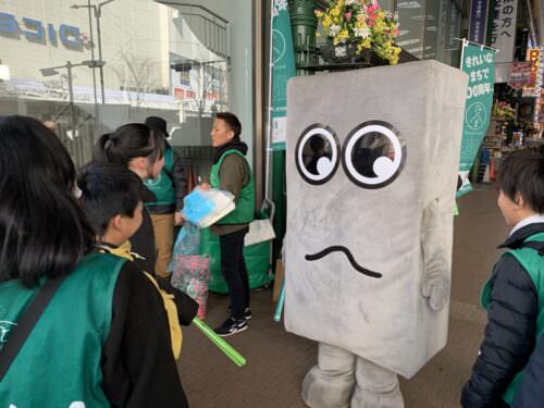 いよいよ市制100周年イヤー。ちょっと寒い日でしたが、いいお天気で、みんなで楽しくごみひろい。今回は90人以上の方に御参加いただきました。ごみは全部で15袋。ちょっと変わった地元キャラ「チョリ山チョリ男」も参加。頑張ってごみ拾いしてくれました!