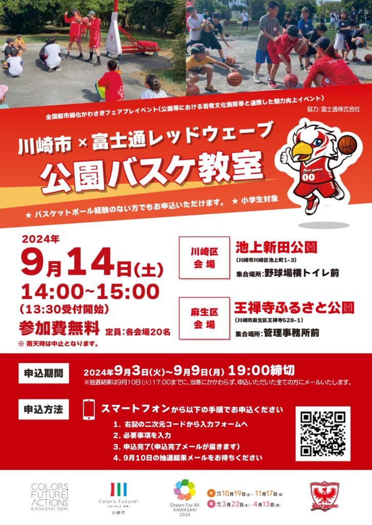 9月14日(土) 川崎市×富士通レッドウェーブ 公園バスケ教室 参加申し込みフォーム (logoform.jp)