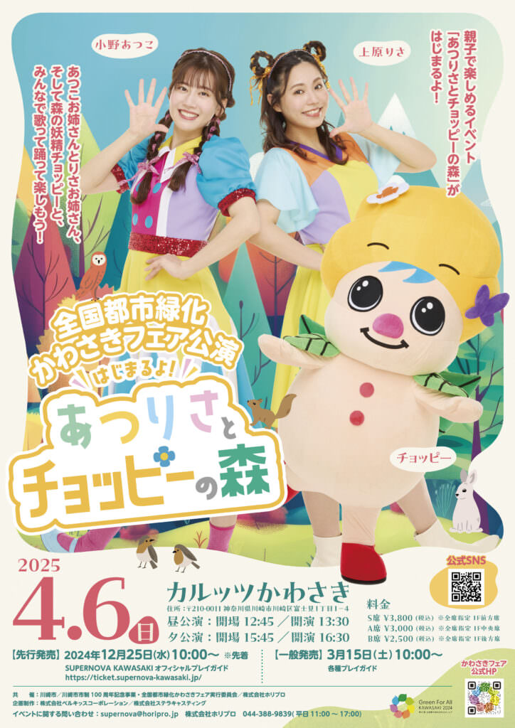 かわさきフェアとコラボして、富士見公園会場近隣のカルッツかわさきで「はじまるよ!あつりさとチョッピ―の森」を開催します。