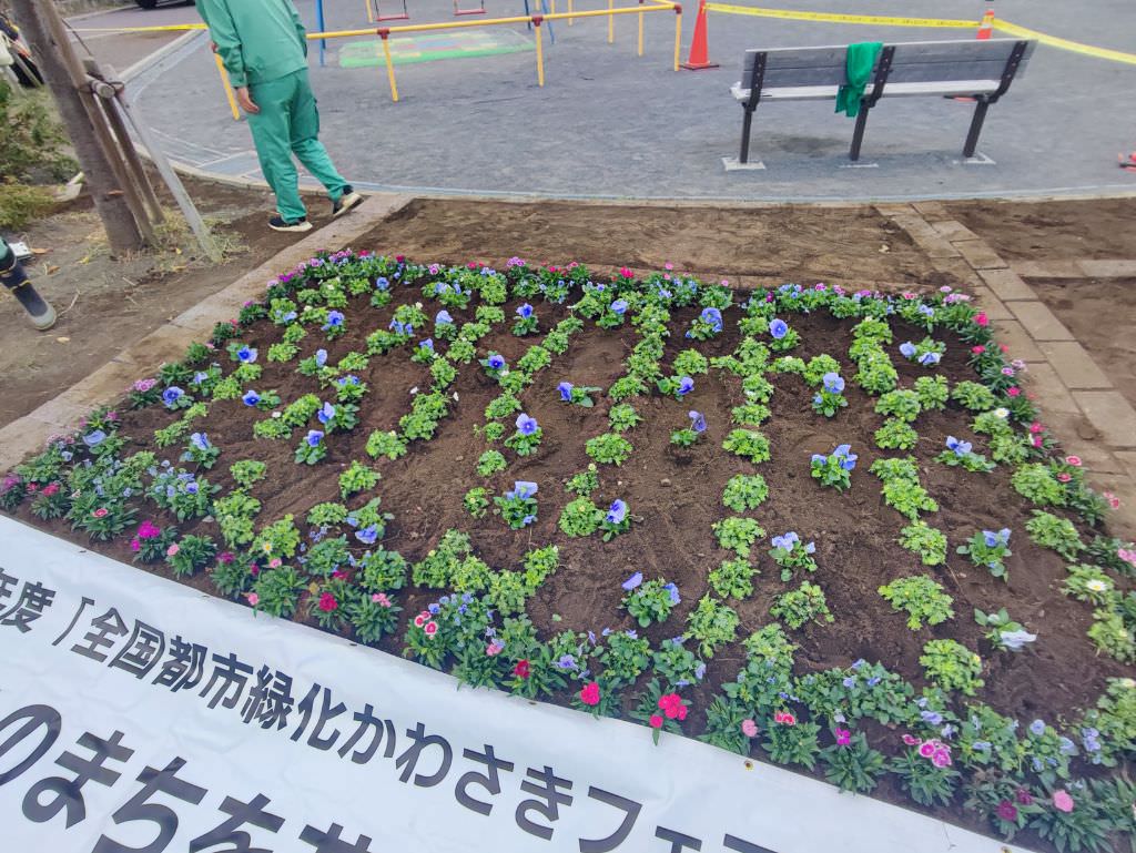 川崎市立小杉小学校の6年生が川崎市市制100周年記念花壇を製作!