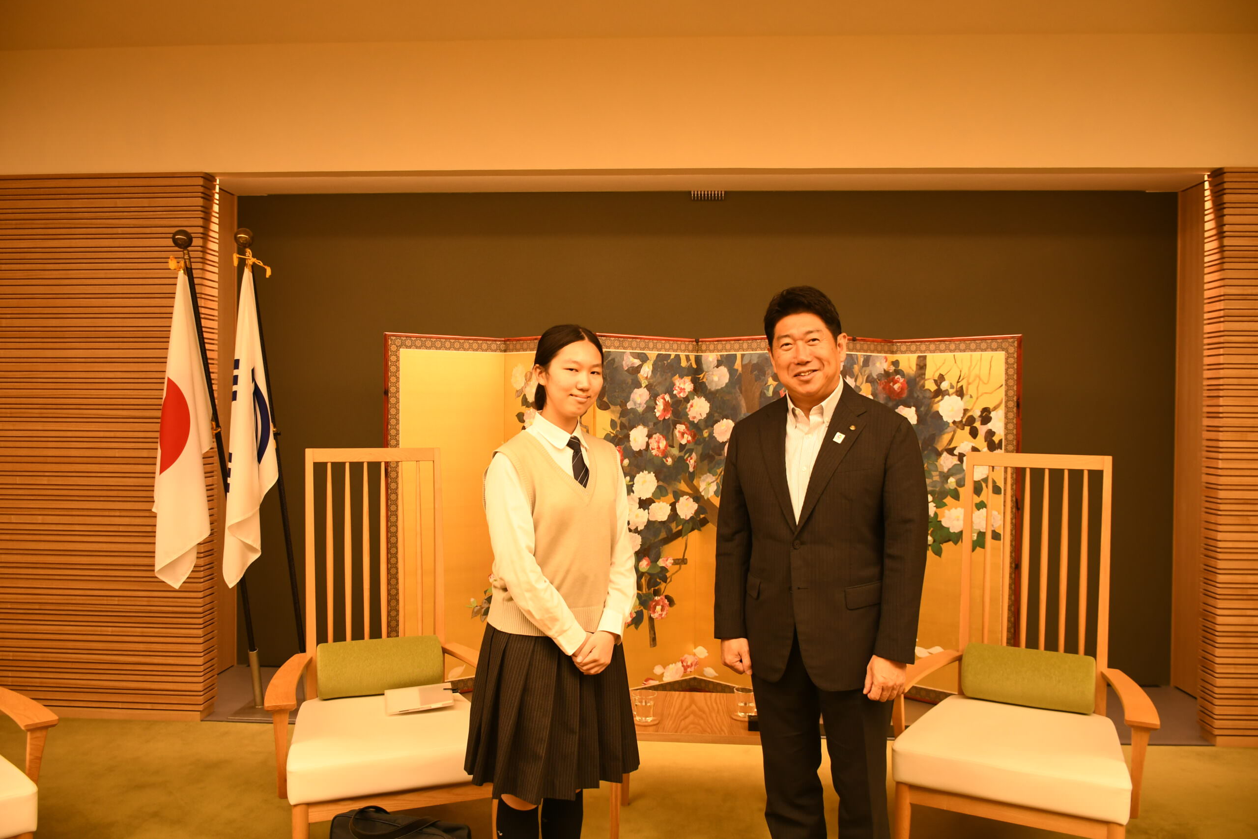 神奈川県高等学校総合文化祭放送情報部門大会アナウンス部門の出場に向けて高校生が市長を取材しました