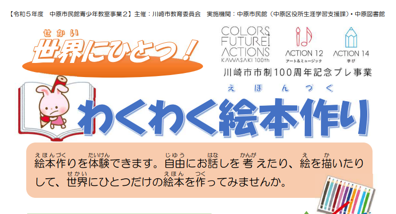 8月20日から「世界にひとつ!わくわく絵本作り」の先着申し込みが始まります!(中原区)