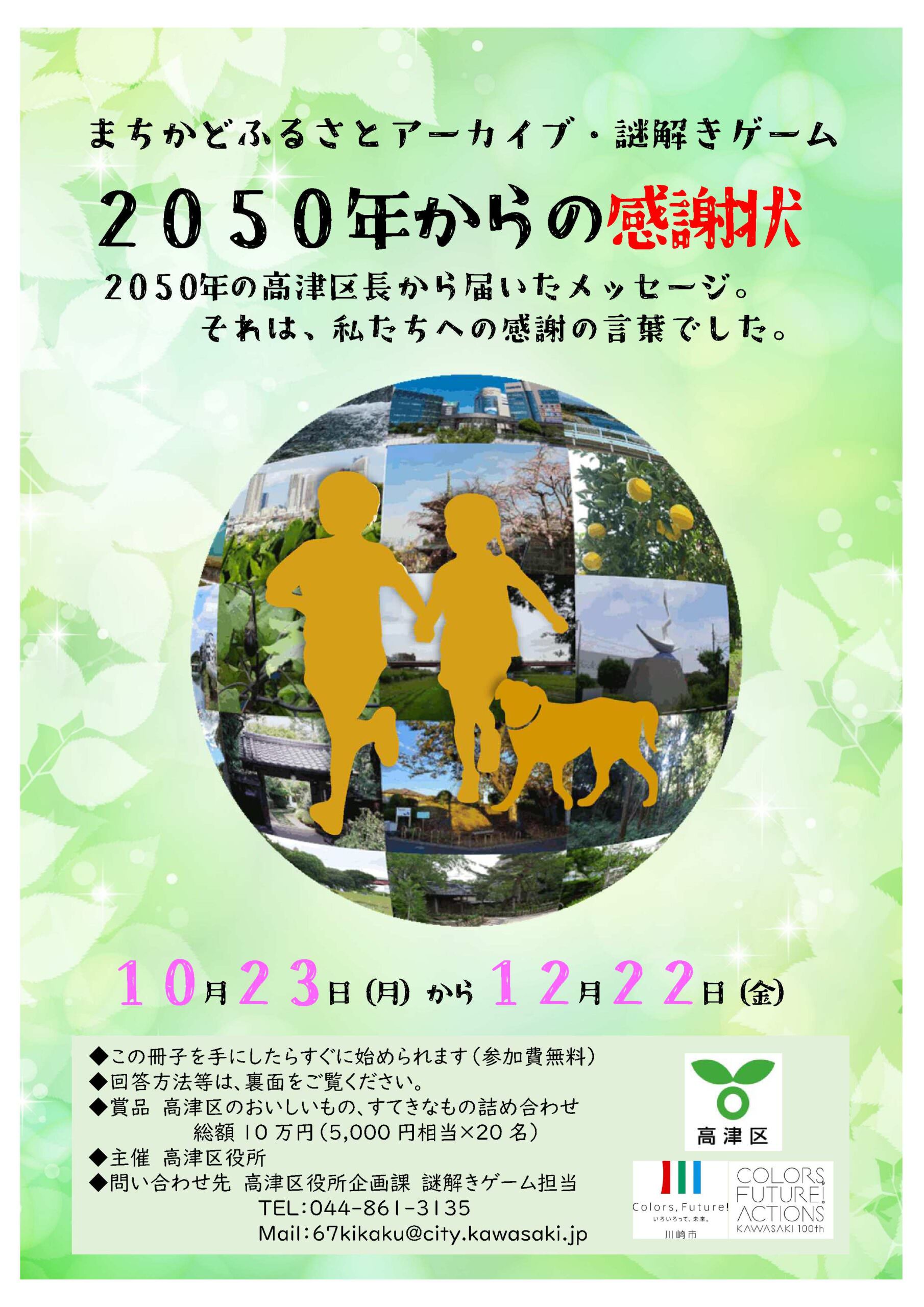謎解きゲーム「2050 年からの感謝状」が高津区で開催されます!(10/23-12/22)