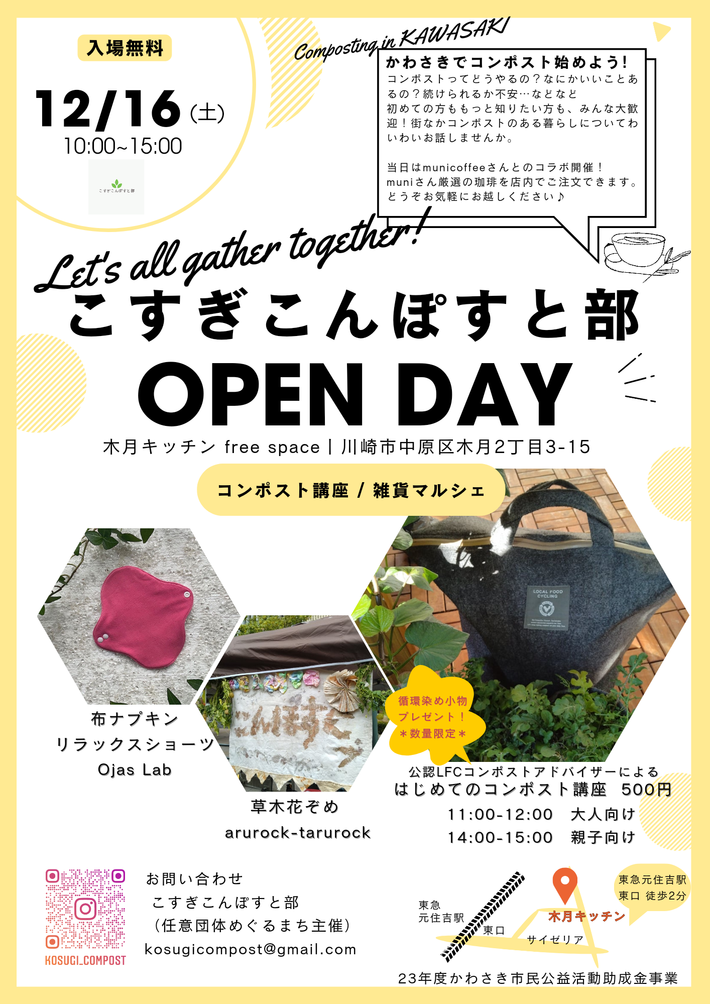 主催者:こすぎこんぽすと部 開催日: 2023年12月16日 時 間:10:00〜15:00 場 所:木月キッチン free space 川崎市中原区木月2丁目3-15