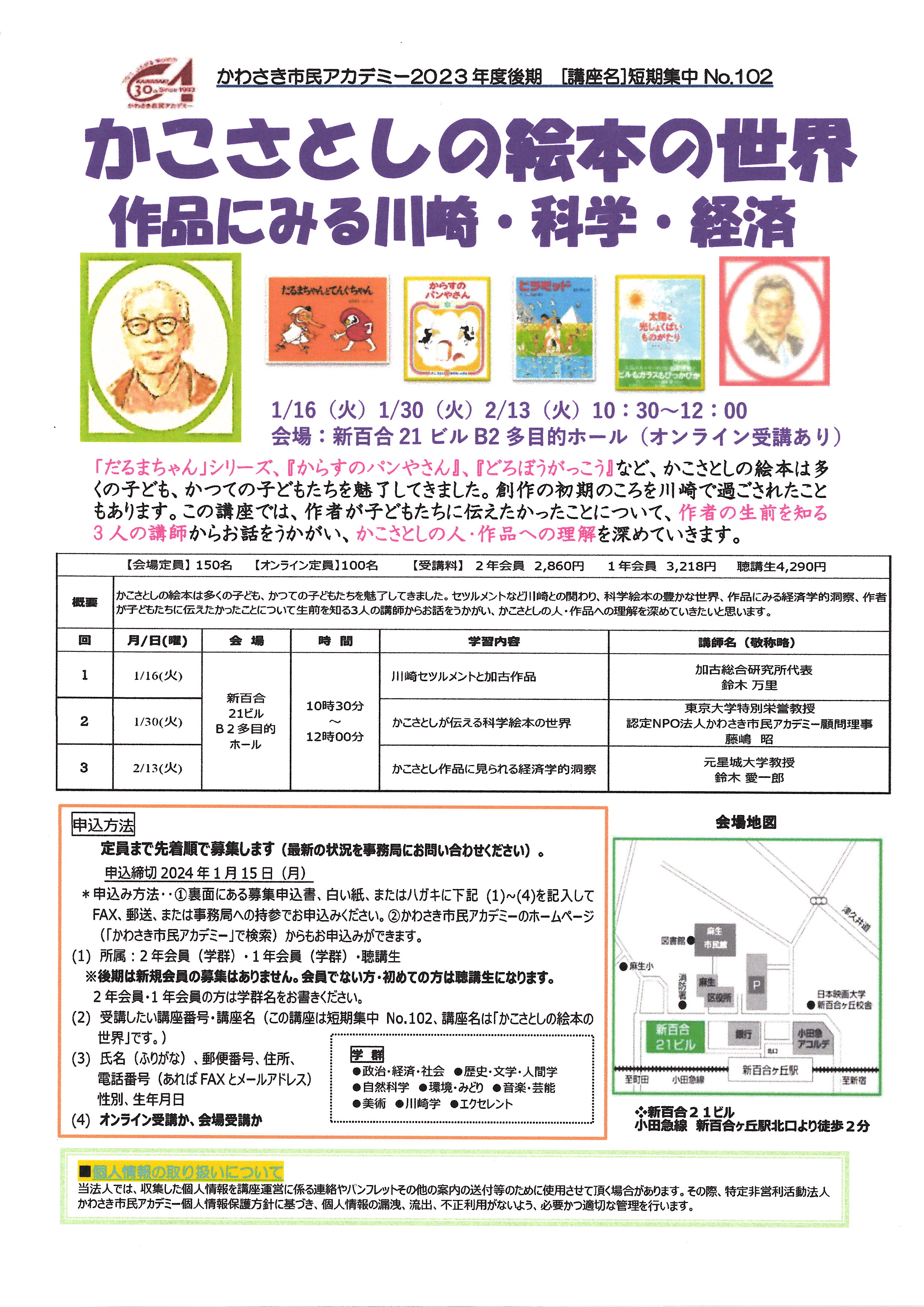 主催者:認定NPO法人かわさき市民アカデミー 開催日: 2024年01月16日 〜 2024年02月13日 時 間:10:30~12:00 場 所:新百合21ビルB2 多目的ホール (オンライン併用)