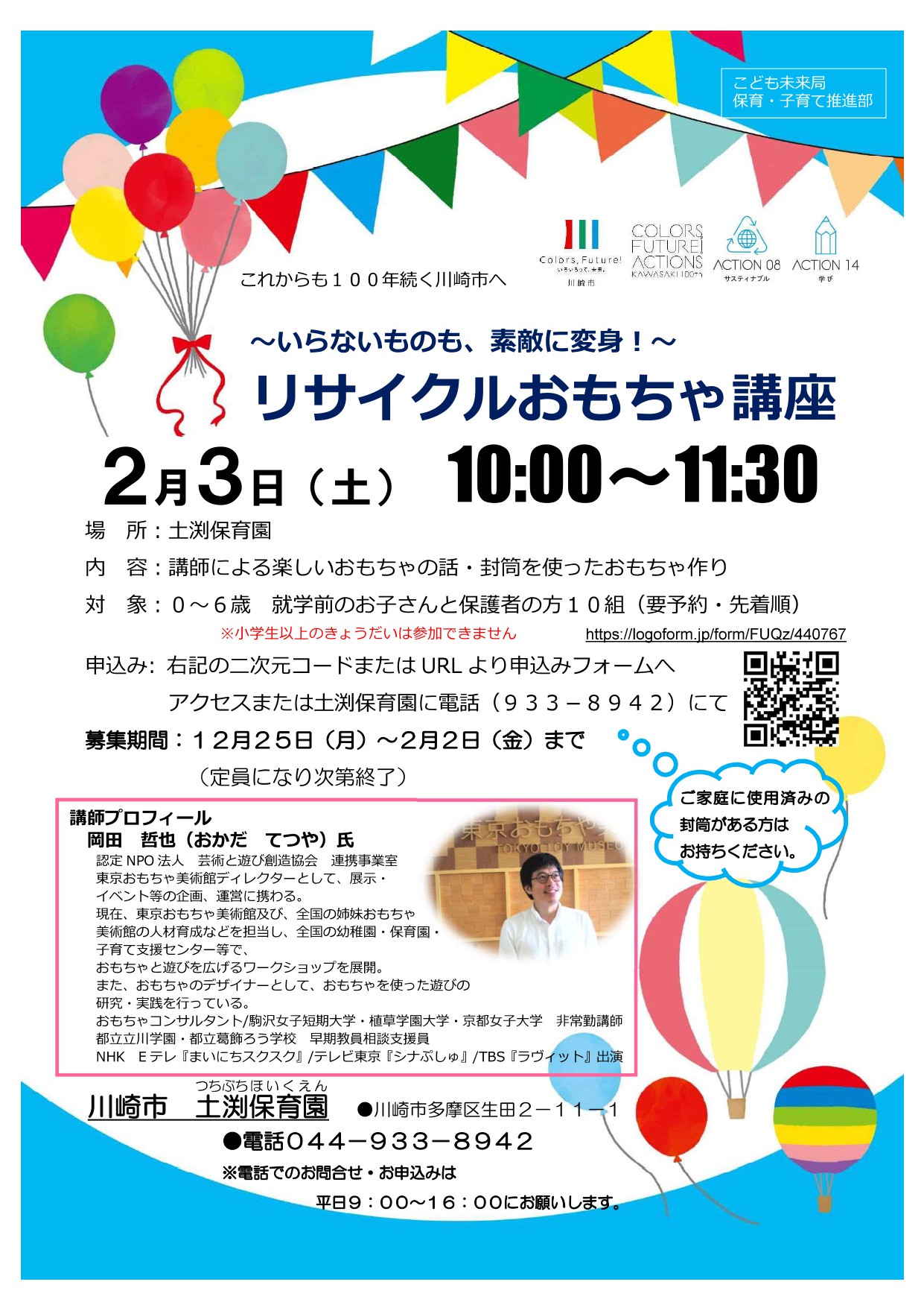 土渕保育園「リサイクルおもちゃ講座」開催のお知らせ(2/3土)