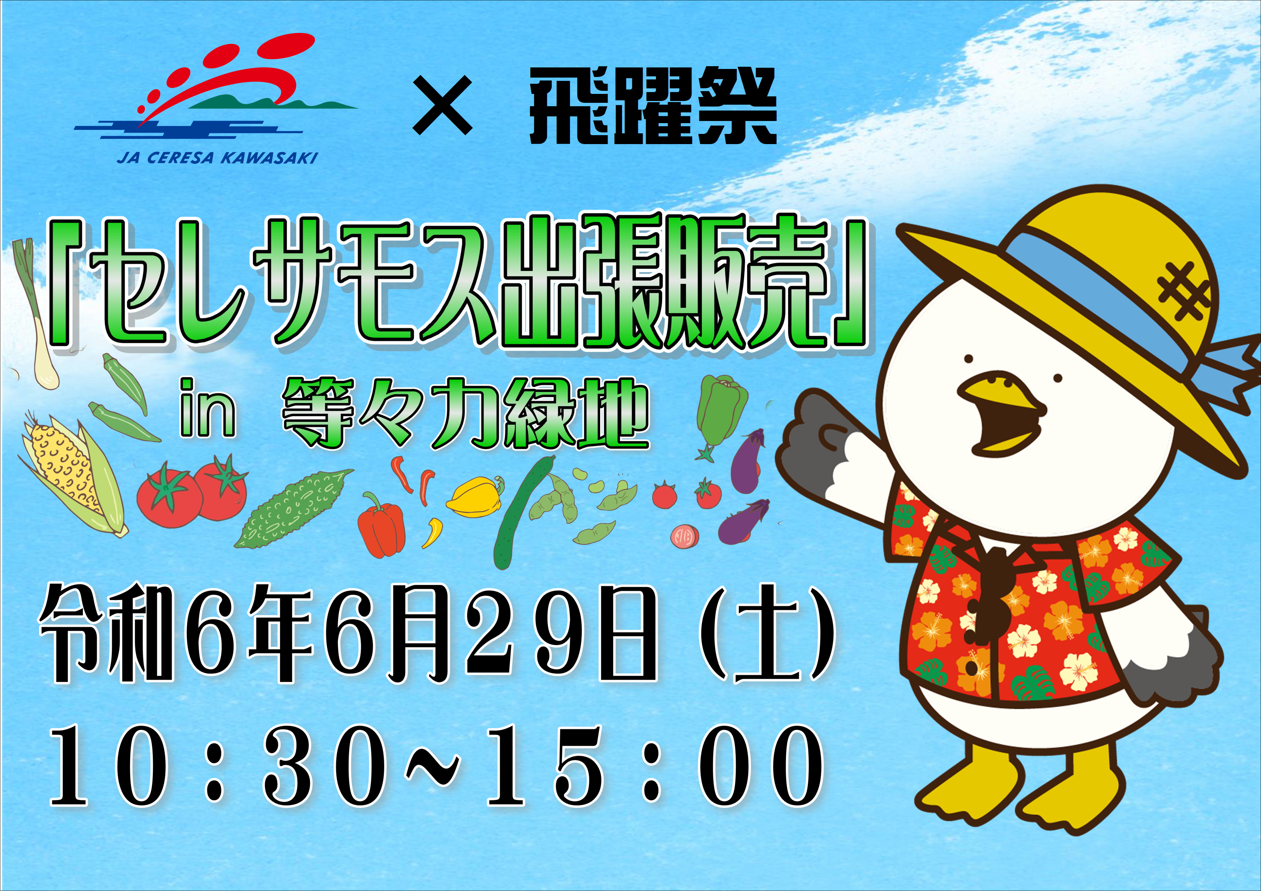 主催者:JAセレサ川崎 開催日: 2024年06月29日 時 間:10:30~15:00 場 所:等々力緑地 催し物広場