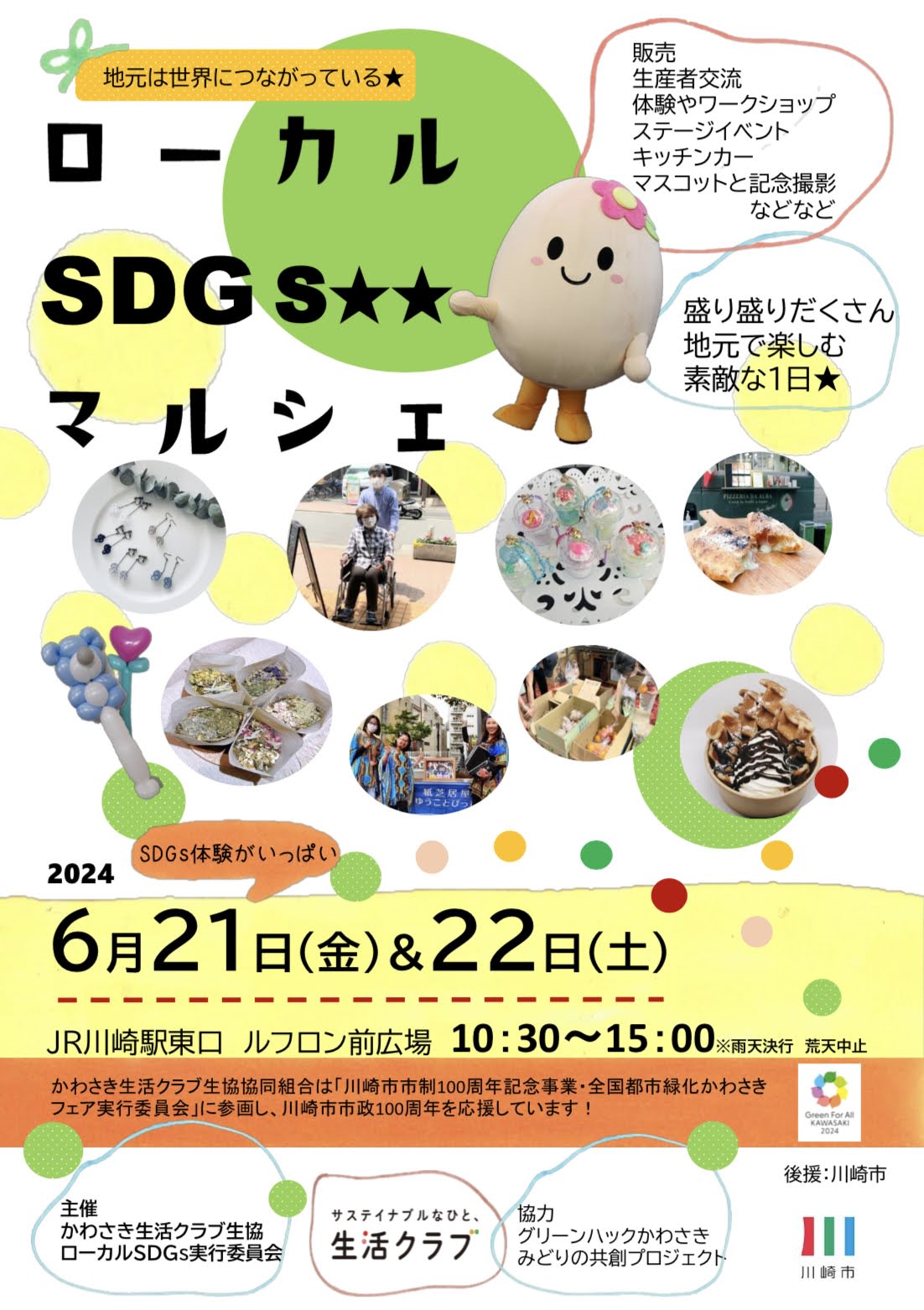 主催者:かわさき生活クラブ生協・ローカルSDGs実行委員会 開催日: 2024年06月21日 〜 2024年06月22日 時 間:10:30-15:00 場 所:JR川崎駅東口 ルフロン前広場(川崎駅より徒歩1分) 川崎市川崎区日進町1